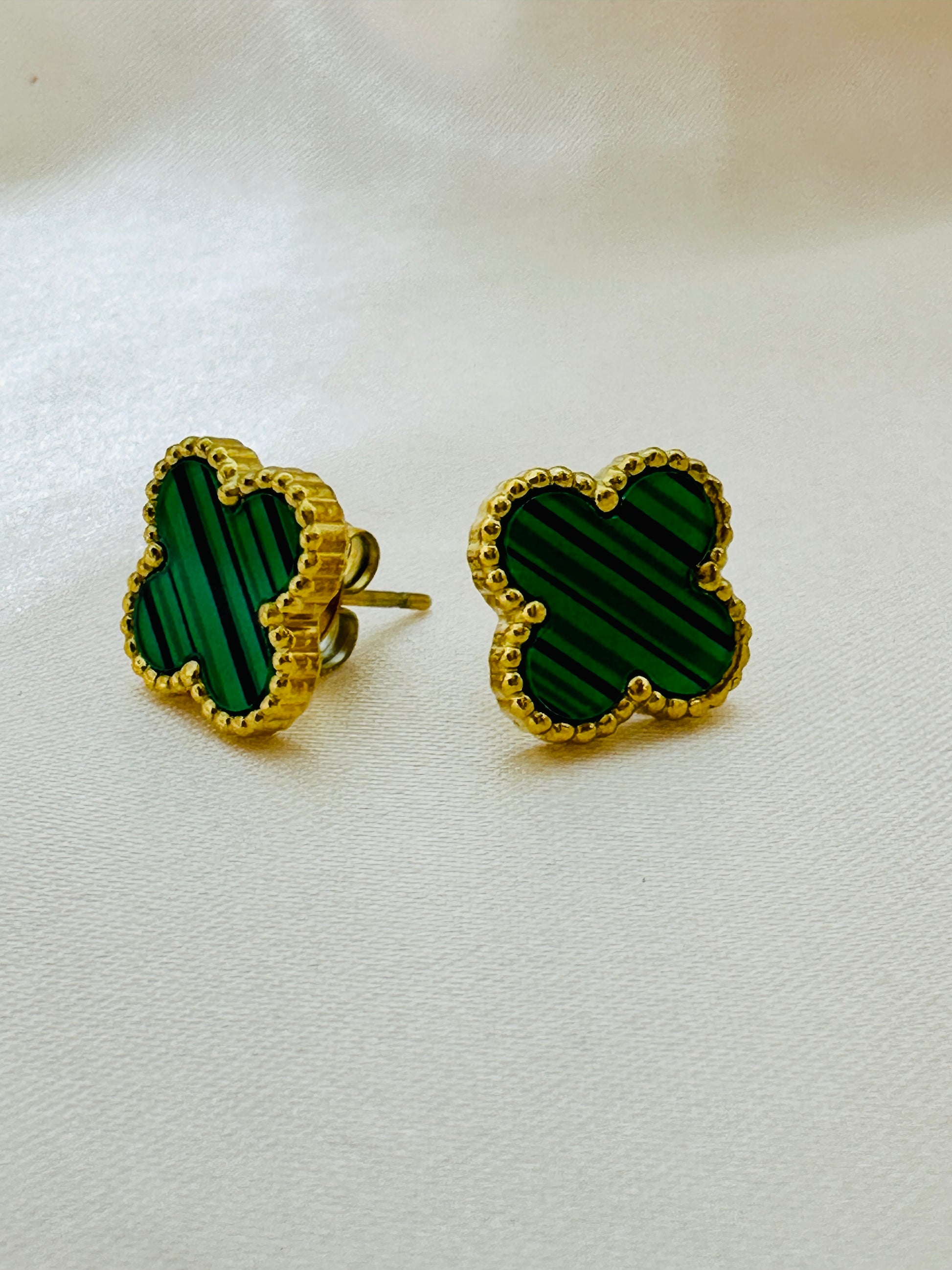 Four Leaf Stud Earrings Emerald