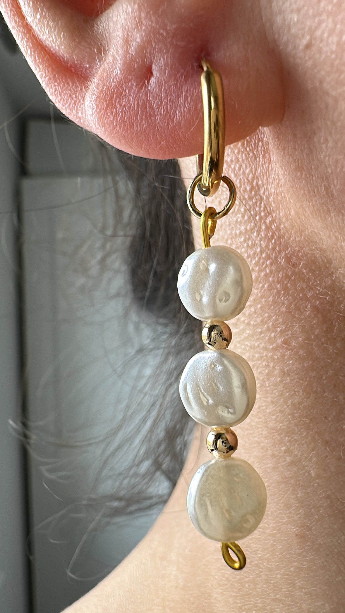 Material:Pearl &18K PVD Gold Plating, 316 L Stainless Steel hoops (L stands for low carbon,316L grade is nickel free, lead free and cadmium free )