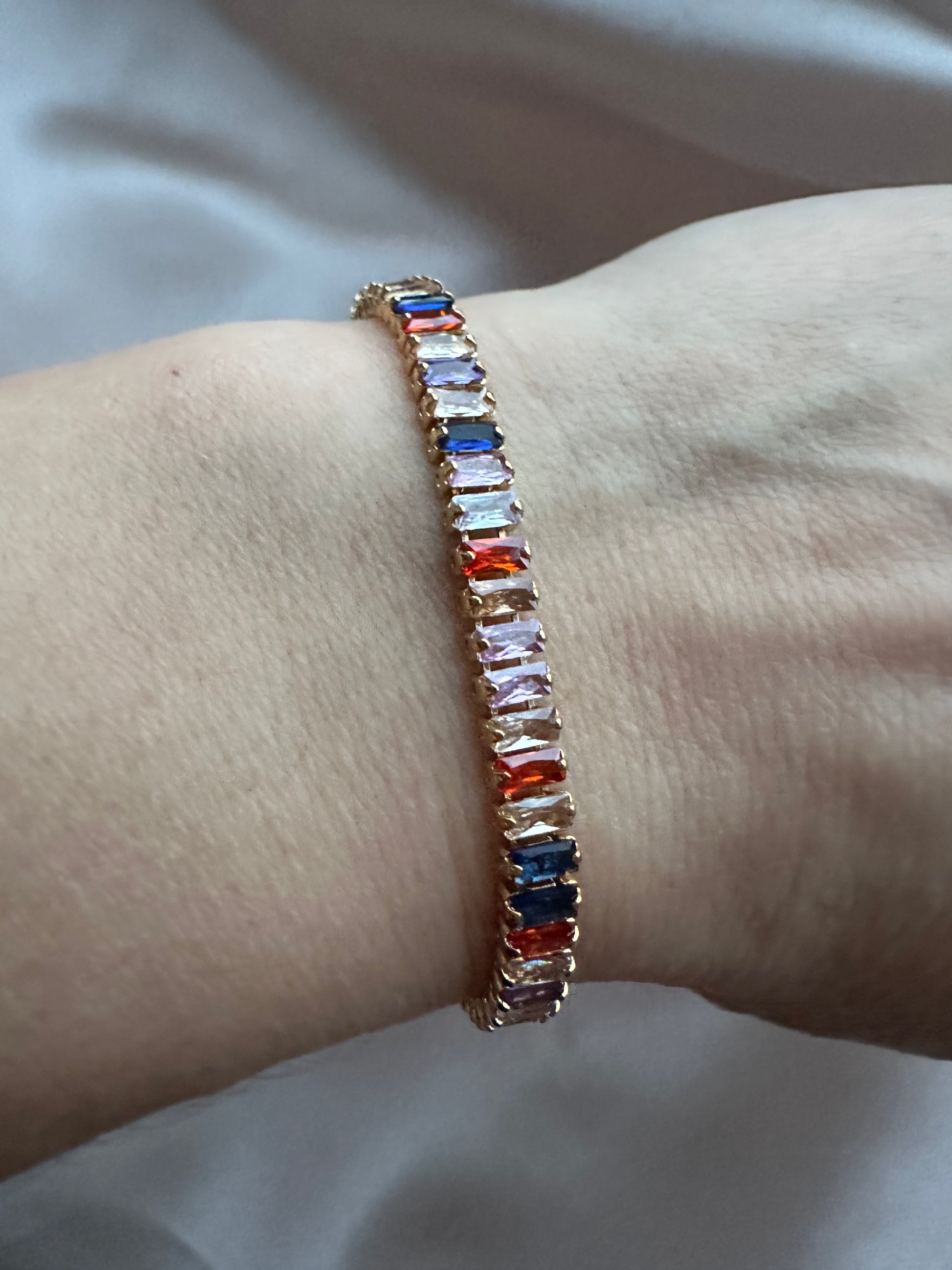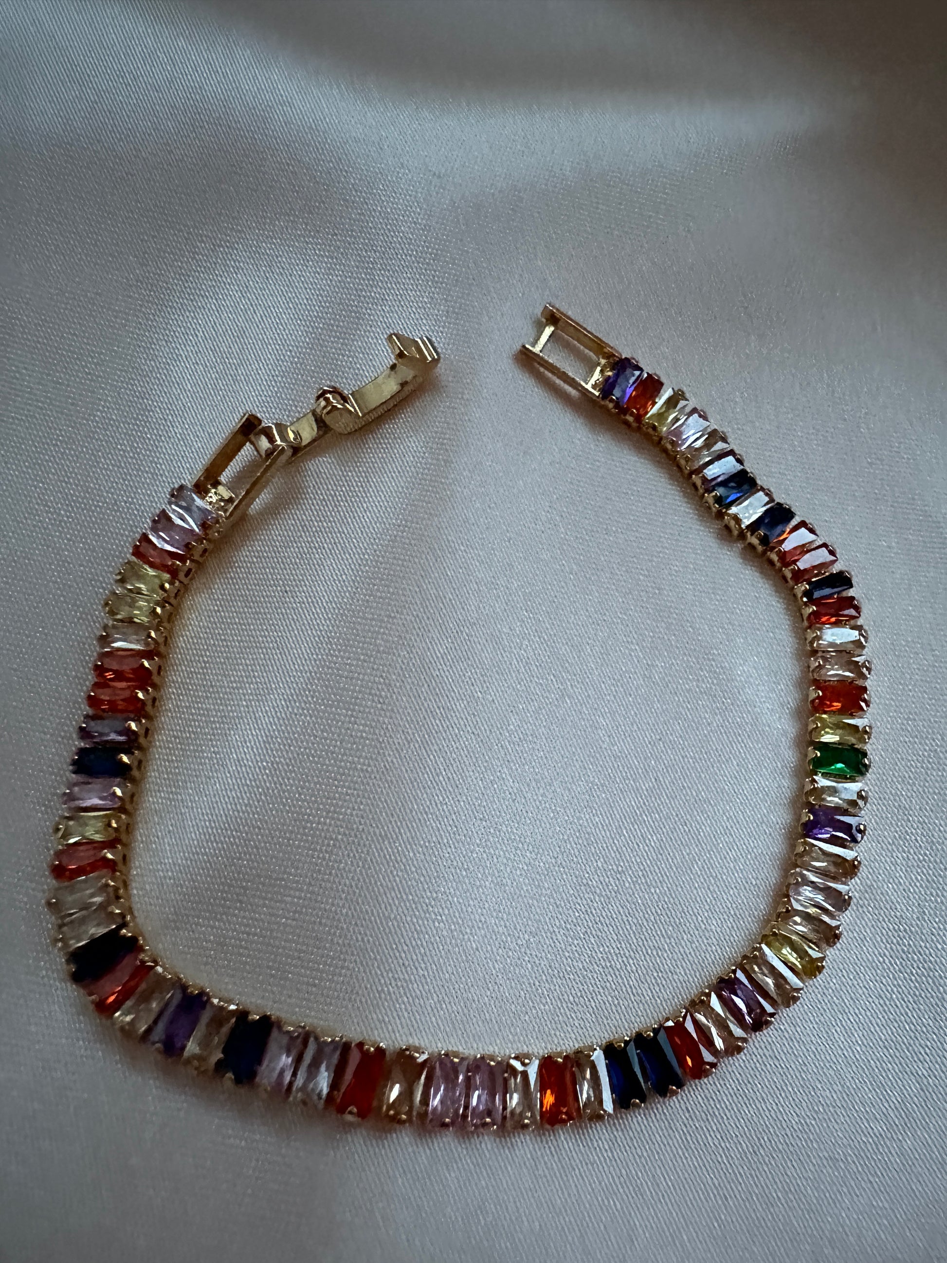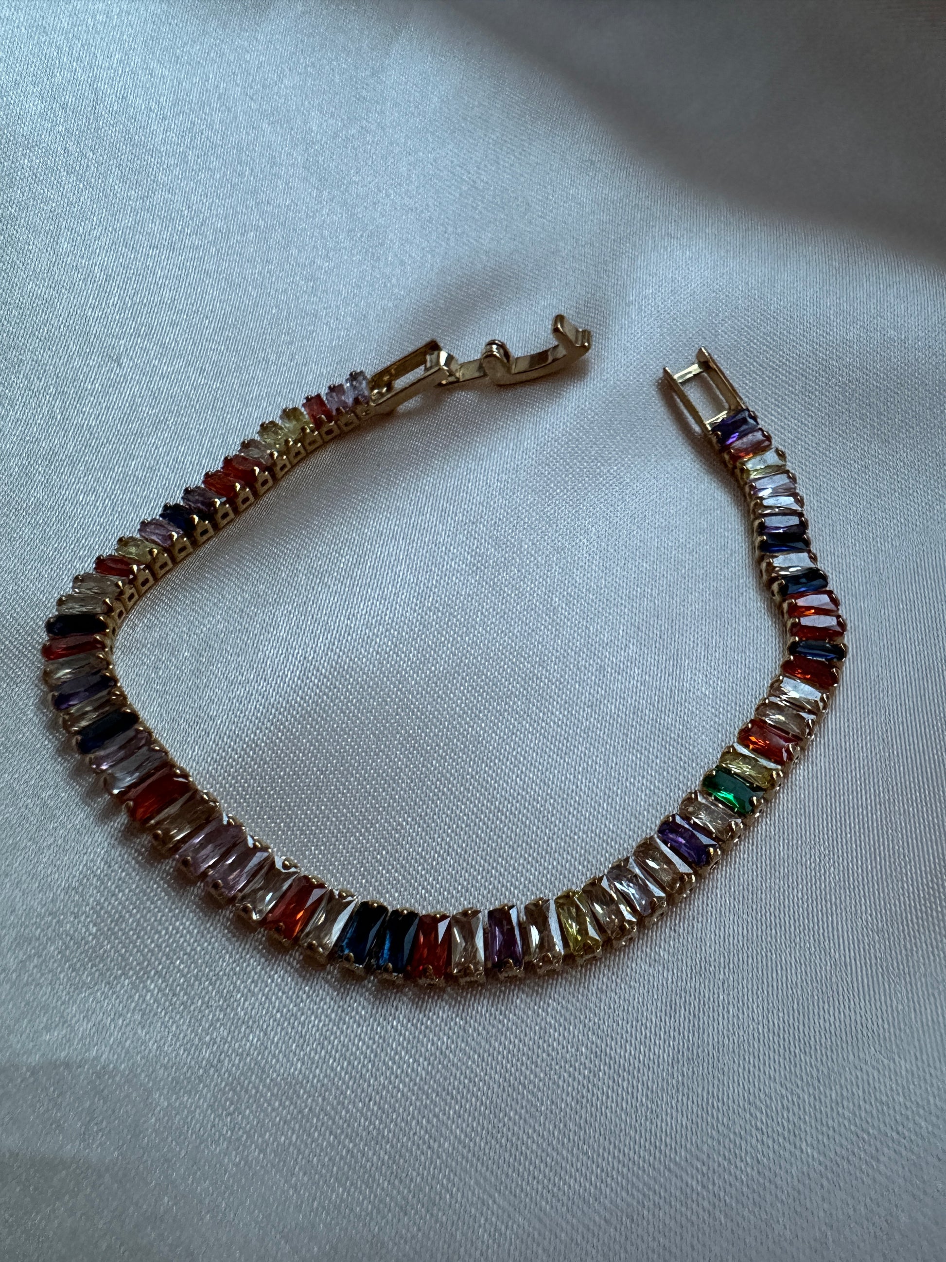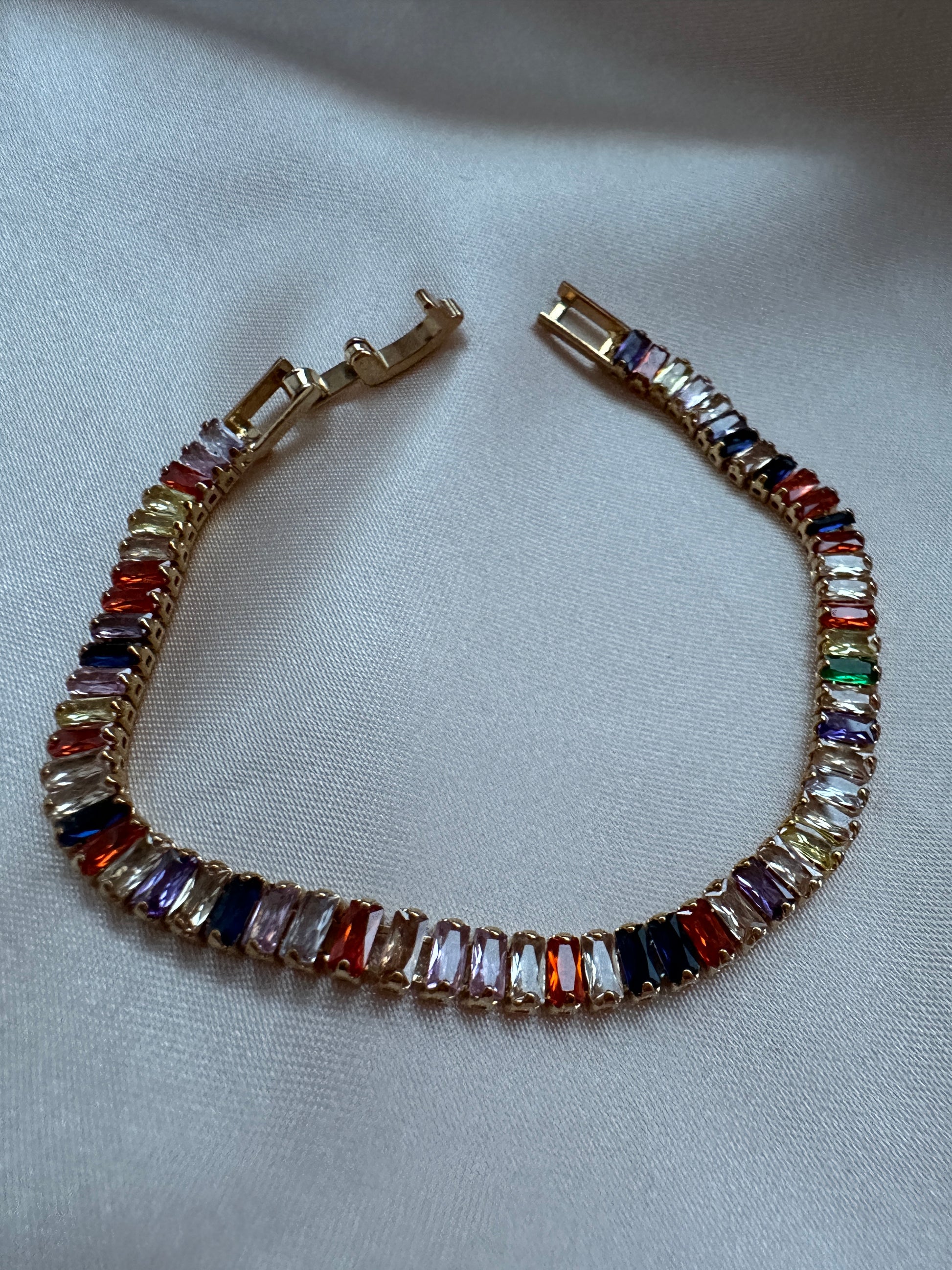Multicoloured Zircon Tennis Bracelet Gold