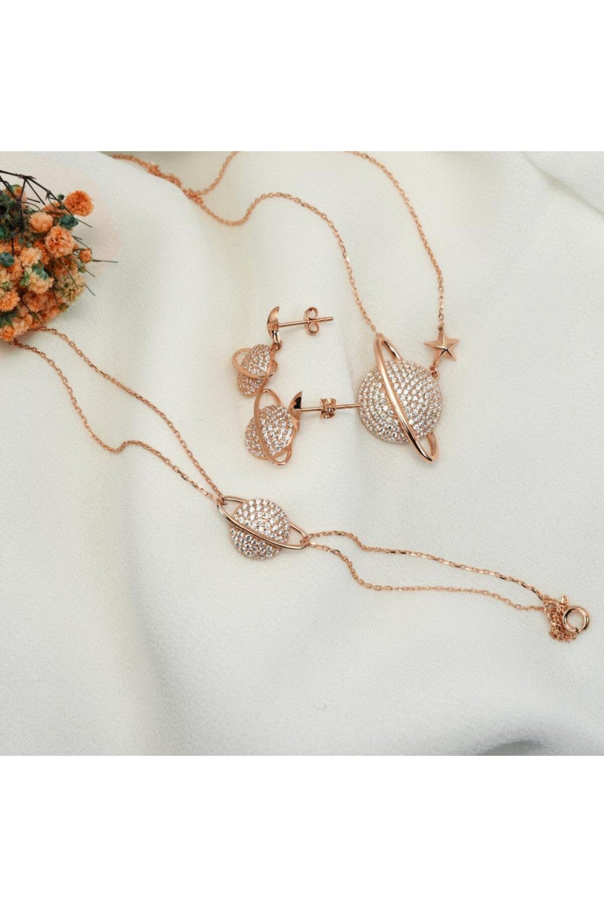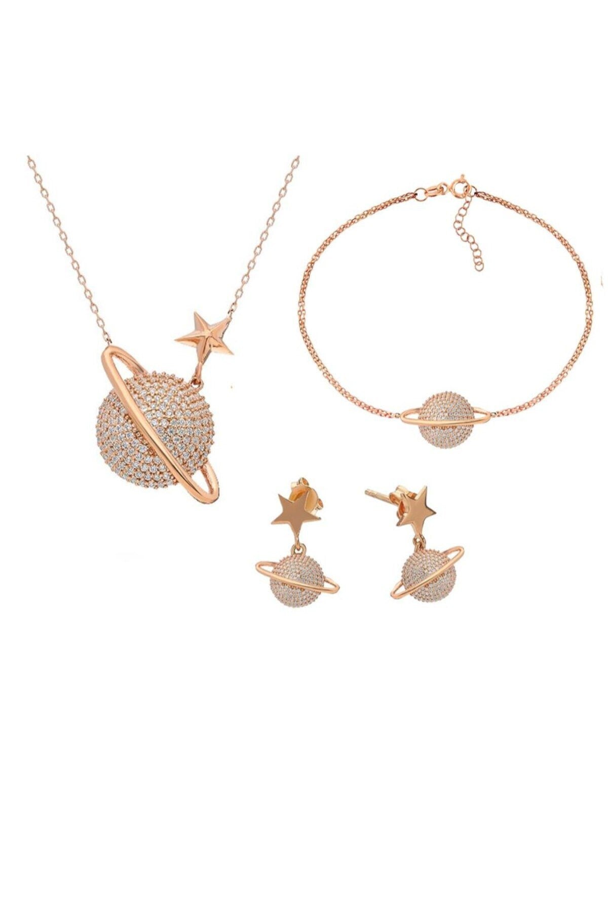 Rose Gold Planet Necklace Set