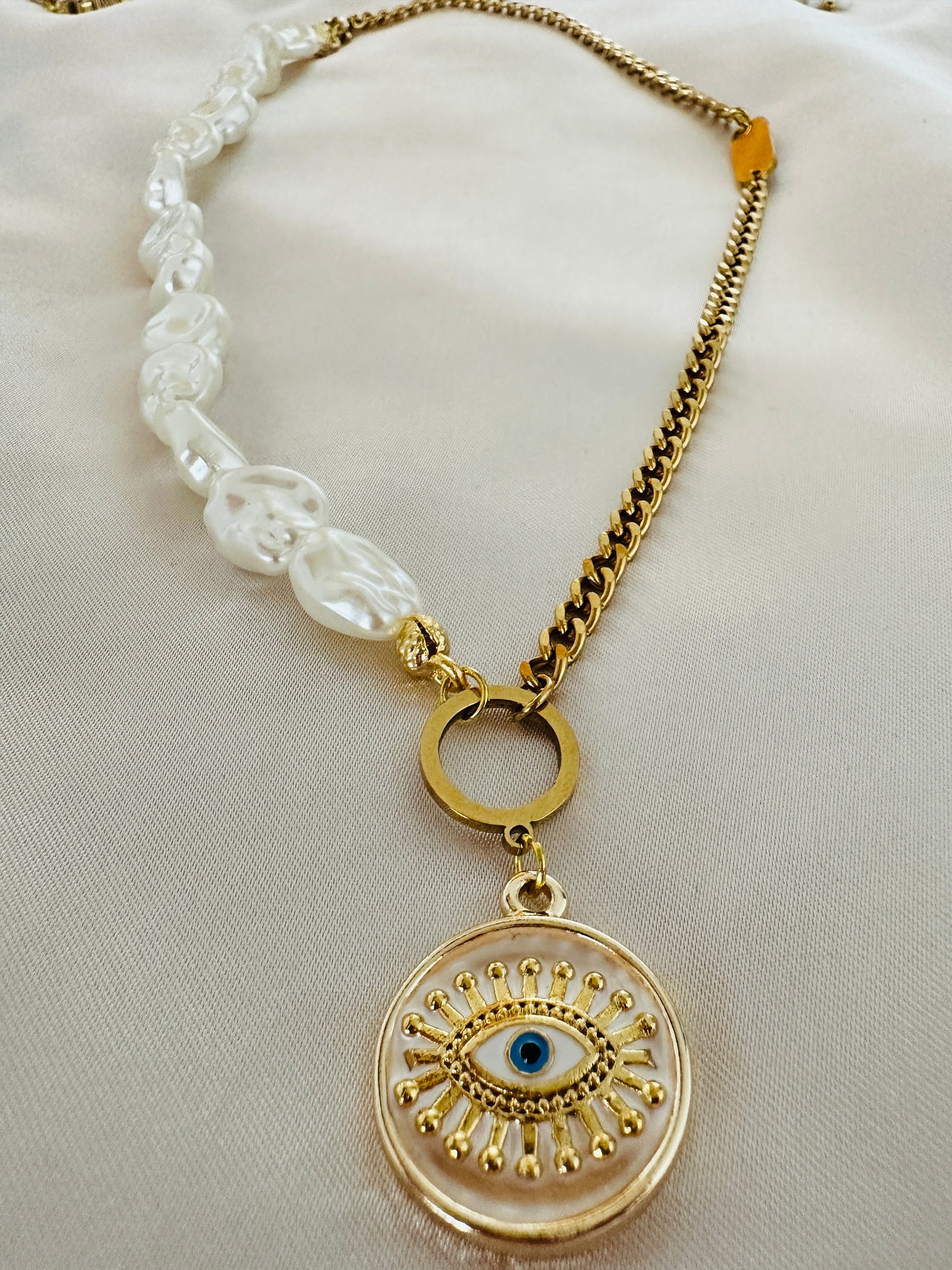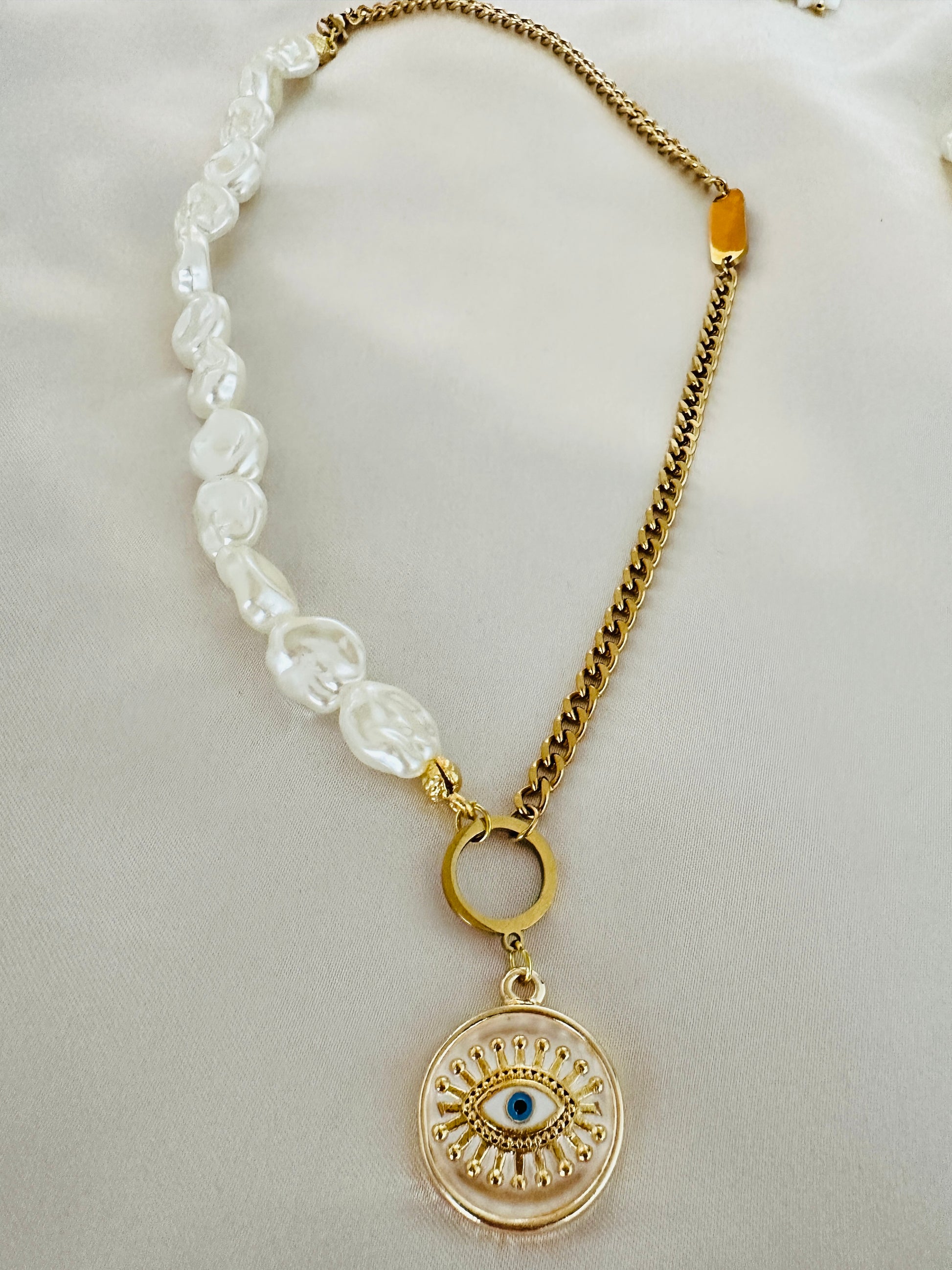 White Evil Eye & Pearl Necklace