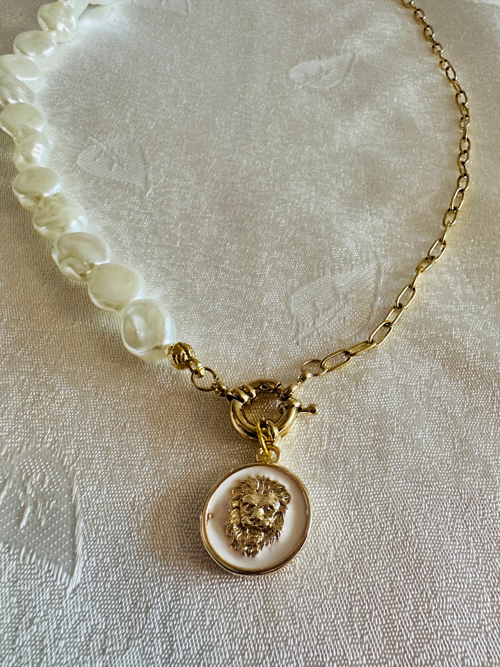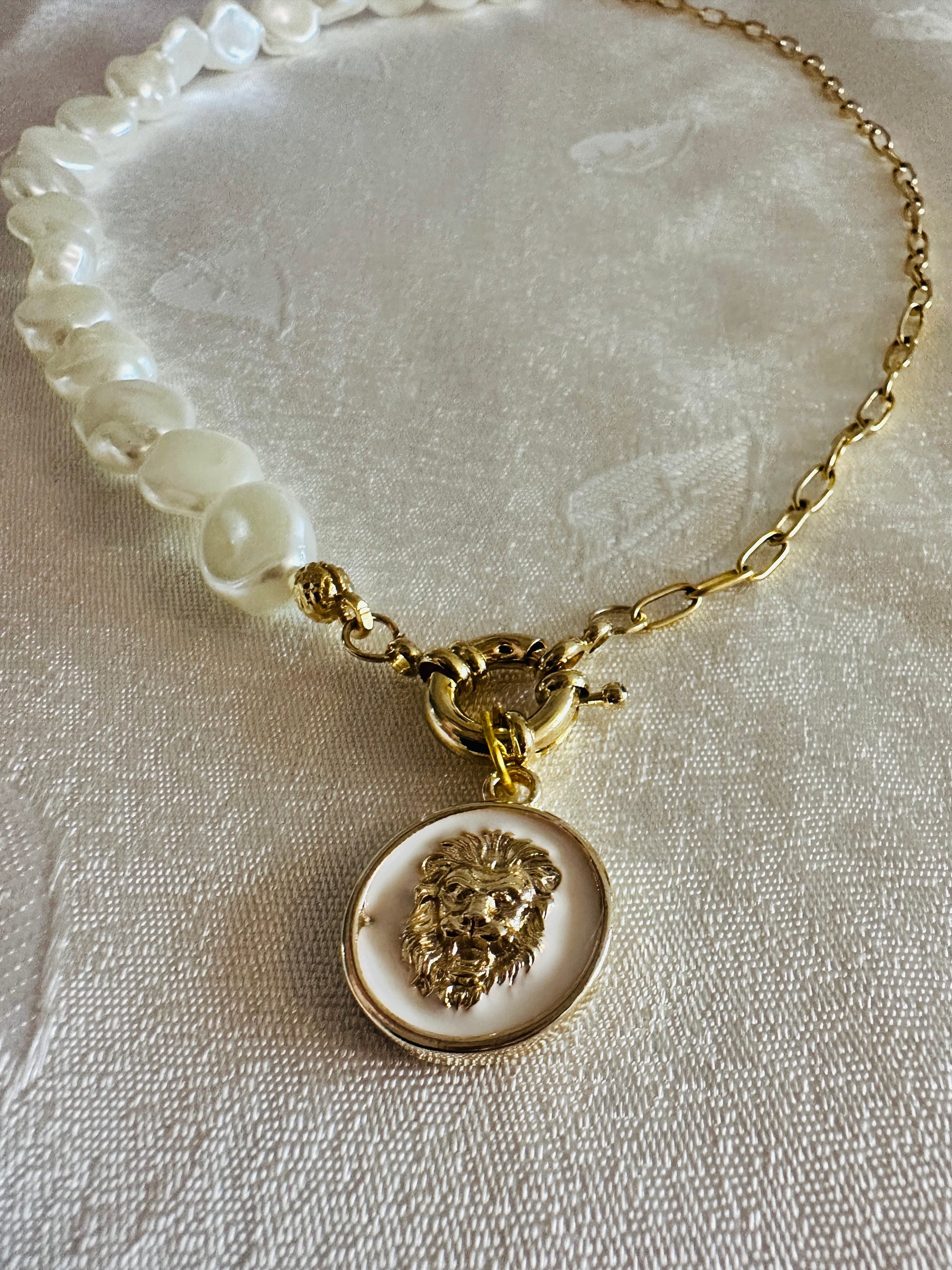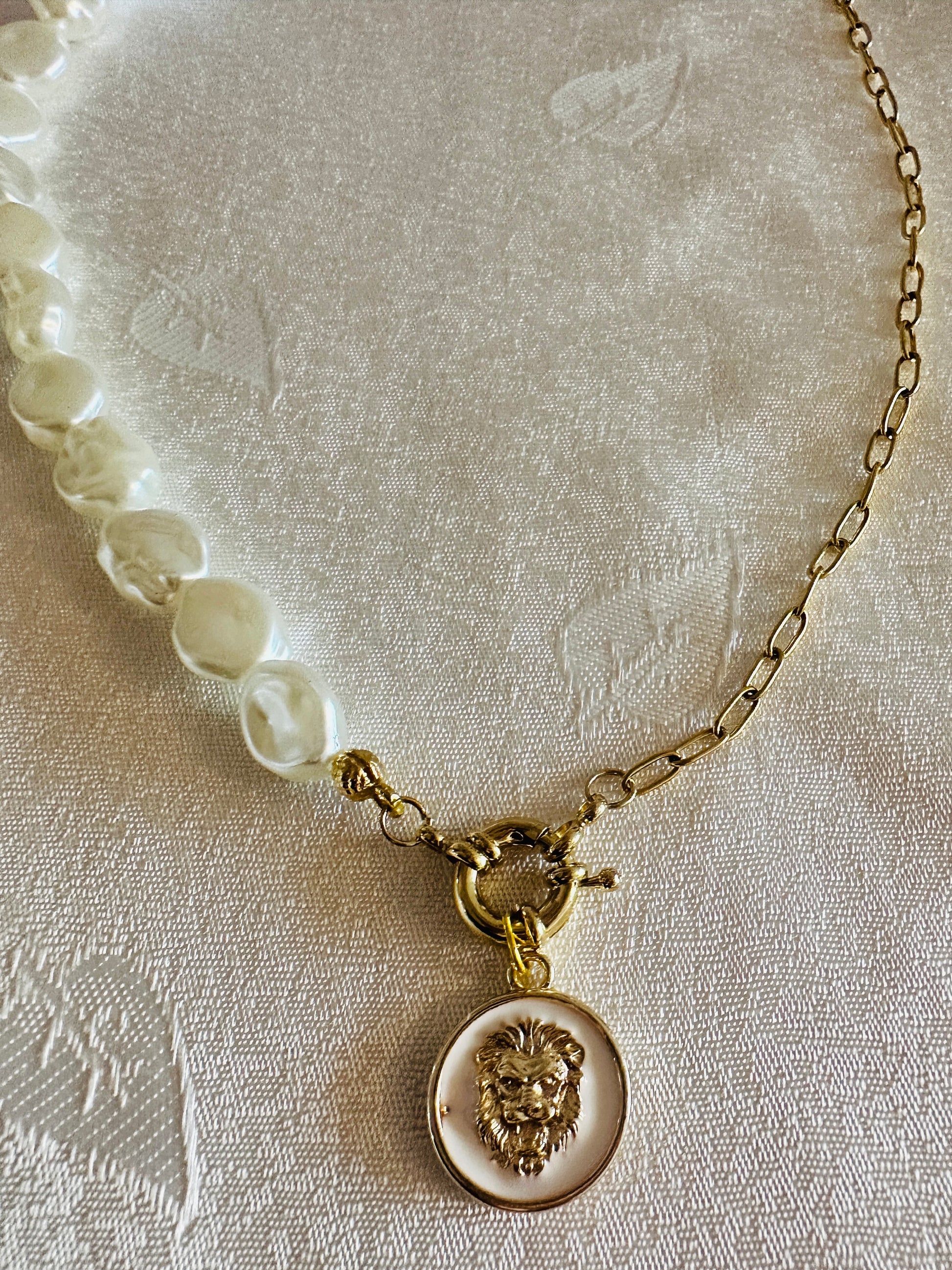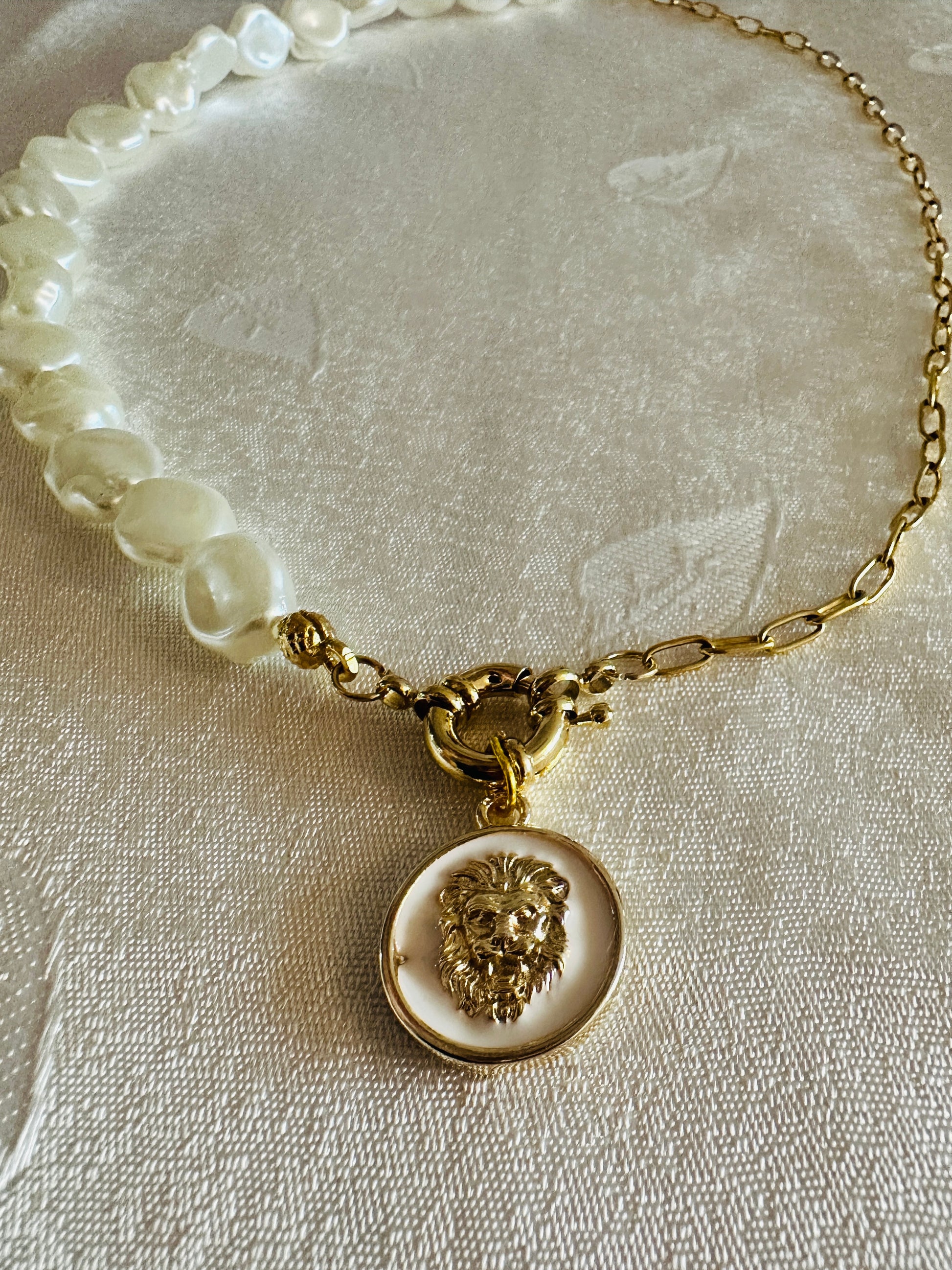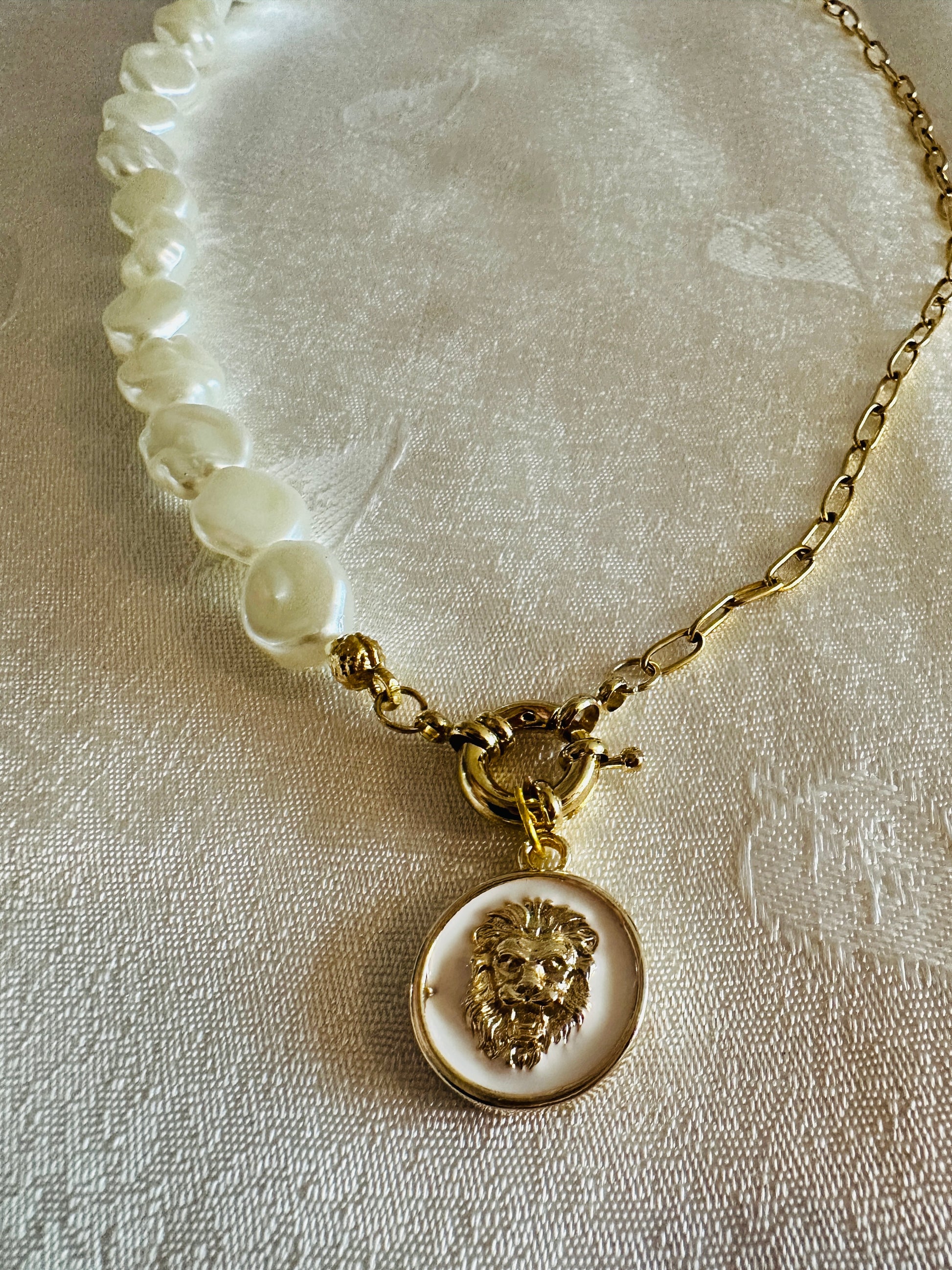 White&Gold Lion Pearl Necklace